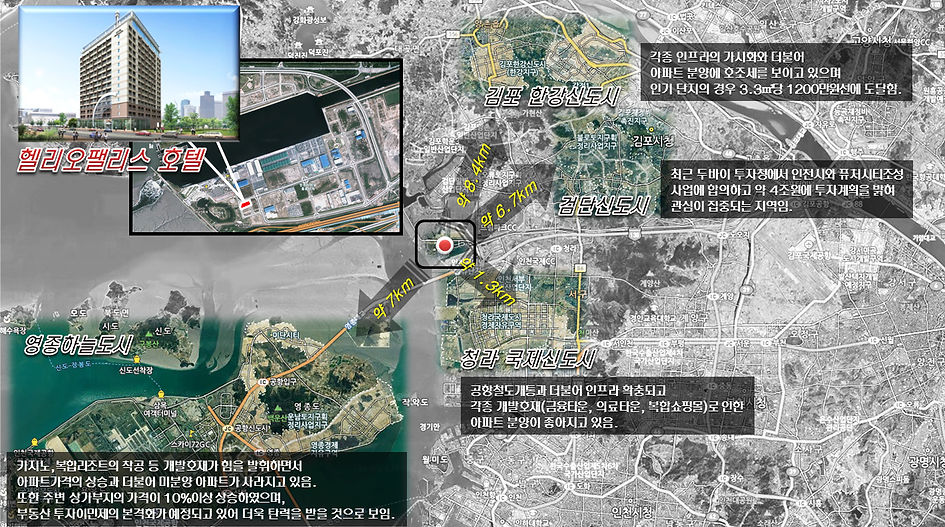 호텔주변으로 인천검단산업단지, 김포학운산업단지, 김포양촌산업단지, 한강신도시, 검단신도시(퓨처시티), 청라국제도시, 송도국제도시,